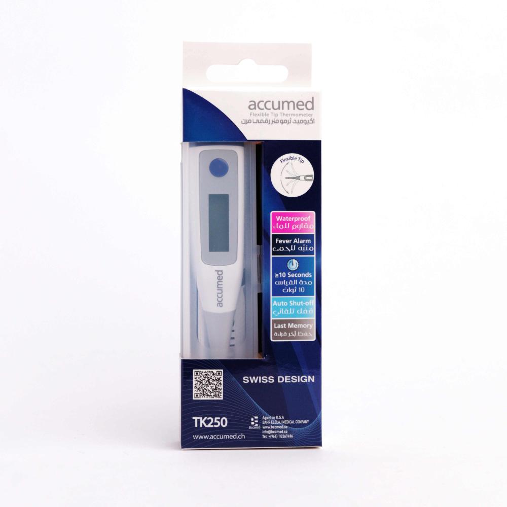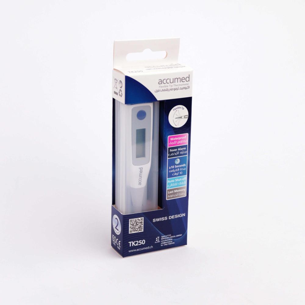 - دقة القياس: يقدم جهاز قياس درجة الحرارة اكيوميد TK250 نتائج دقيقة بسرعة، مما يجعله مناسبًا للاستخدام في المنزل والمستشفيات.