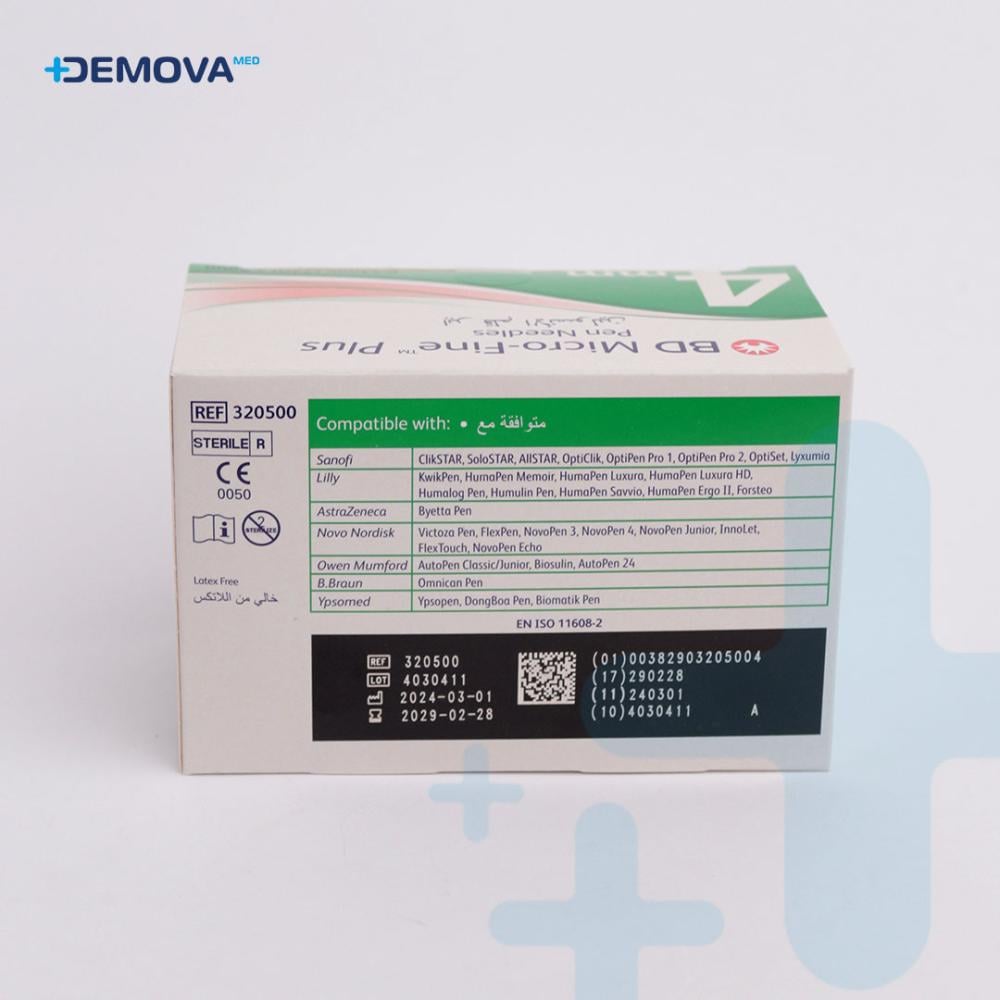 - معايير جودة عالية: إبر أقلام الأنسولين BD Micro-Fine Plus مصنعة وفقًا لمعايير جودة صارمة، وتخضع لاختبارات دقيقة لضمان الأداء الموثوق والأمان في كل مرة تستخدم فيها.