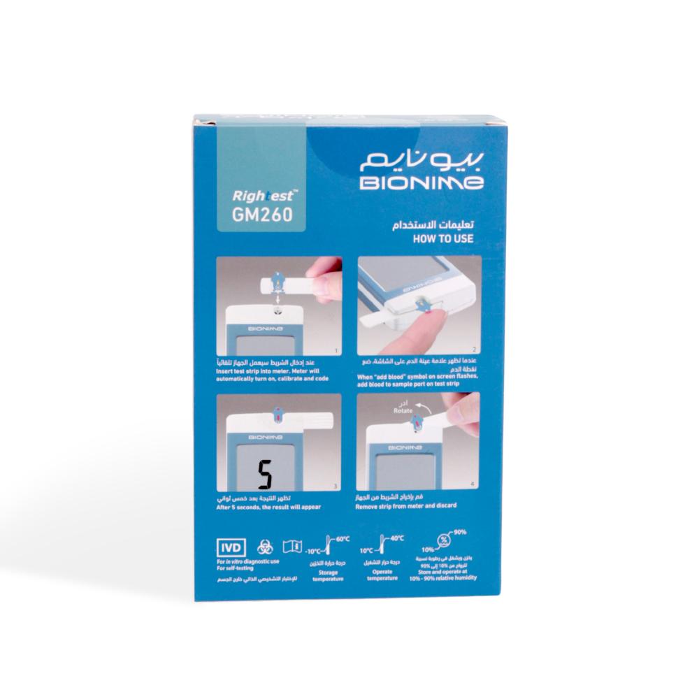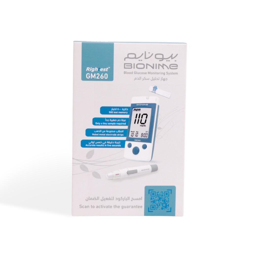 يُعد جهاز قياس السكر بالدم bionime GM260 رفيقًا موثوقًا وفعالًا لمرضى السكري وجميع من يسعون لمراقبة صحتهم بشكل دقيق وموثوق. مع تصميمه الذكي وسهولة استخدامه، يوفر جهاز قياس السكري GM260 قراءات دقيقة وسريعة، مما يمنحك الثقة في اتخاذ القرارات الصحيحة بشأن إدارة مستوى السكر في الدم.