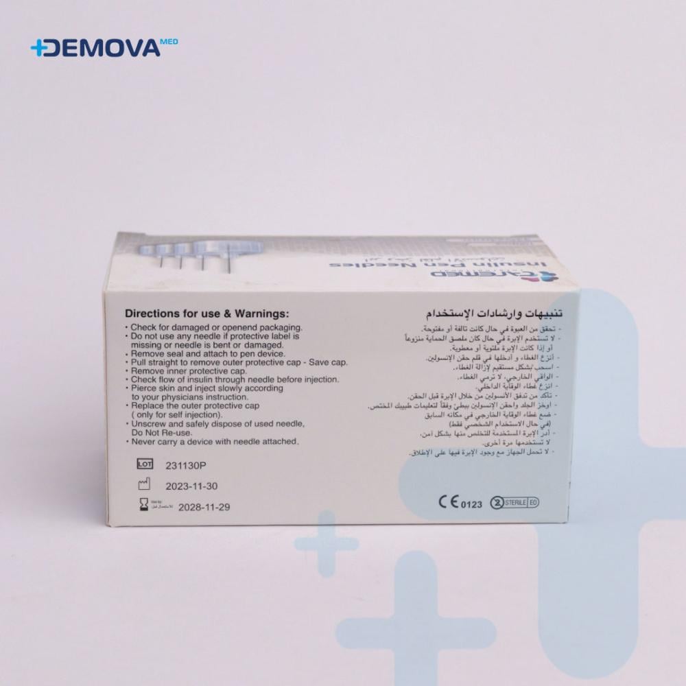 - تصميم مريح: تتميز إبر قلم الأنسولين من كيرميد بتصميم دقيق ومتطور، مما يسهل عملية الحقن حتى للمبتدئين. تأتي إبر قلم السكر بحجم 4 ملم وسمك 32G مما يجعلها مثالية للأشخاص الذين يعانون من الخوف من الحقن أو القلق من الألم.
