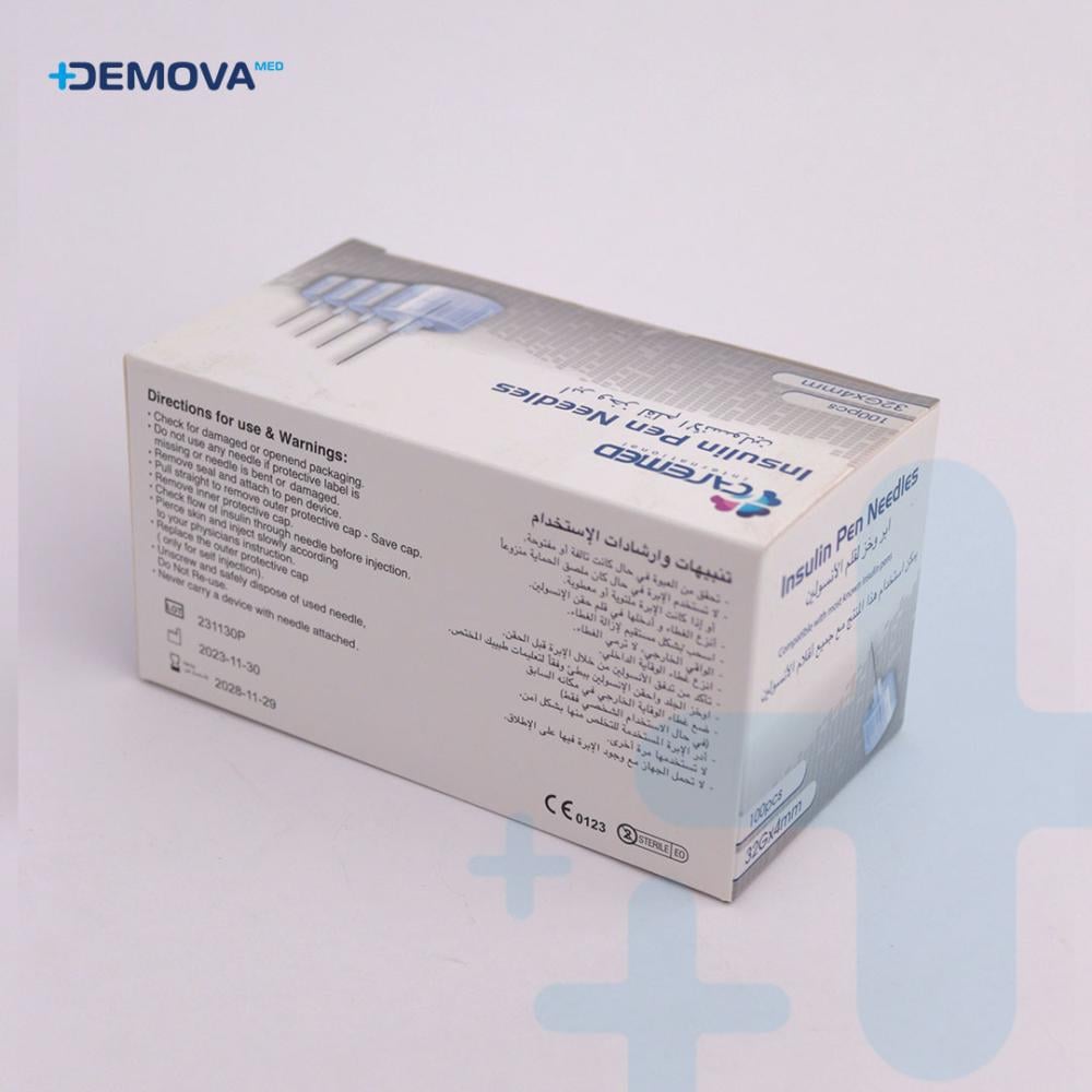 - القياسات الدقيقة: تأتي إبرة أنسولين بحجم 4 مم وسماكة 32G، مما يضمن تجربة حقن مريحة وغير مؤلمة. تتيح هذه الأبعاد توزيع الأنسولين بشكل فعال داخل الجسم.