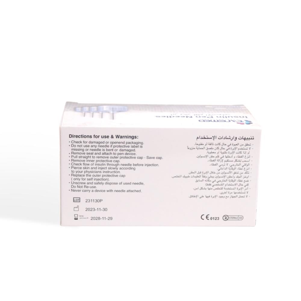 - القياسات الدقيقة: تأتي إبرة أنسولين بحجم 4 مم وسماكة 32G، مما يضمن تجربة حقن مريحة وغير مؤلمة. تتيح هذه الأبعاد توزيع الأنسولين بشكل فعال داخل الجسم.