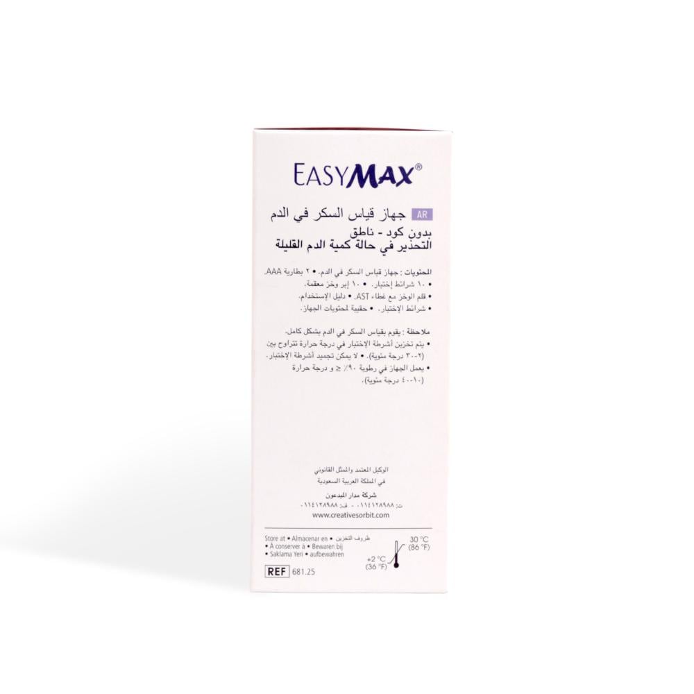 - الأمان والنظافة: إبر الوخز والشرائط المعقمة تضمن أقصى درجات النظافة والأمان أثناء استخدام جهاز قياس السكر EasyMax.