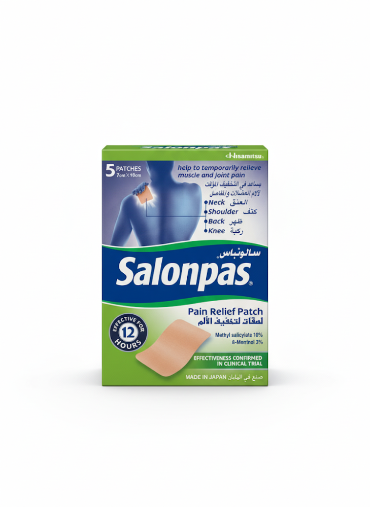 سالونباس لصقة للألم هي الحل المثالي لتخفيف آلام العضلات والمفاصل بفعالية وسرعة. تحتوي على مكونات فعّالة تعمل على تهدئة الألم وتخفيف التصلب والتشنجات الناتجة عن التعب أو المجهود البدني.