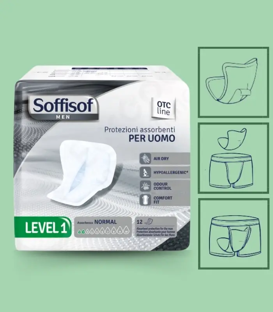 حفاضات سوفي سوفت للرجال توفر حماية مريحة ضد تسربات البول البسيطة. مصممة لتأمين ملاءمة جيدة، تحتوي على شريط لاصق لتثبيت المادة الماصة في مكانها، مما يوفر الراحة وحرية الحركة. حل عملي لسلس البول لدى الرجال.