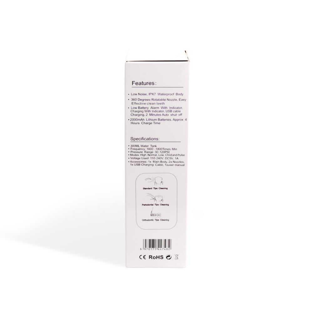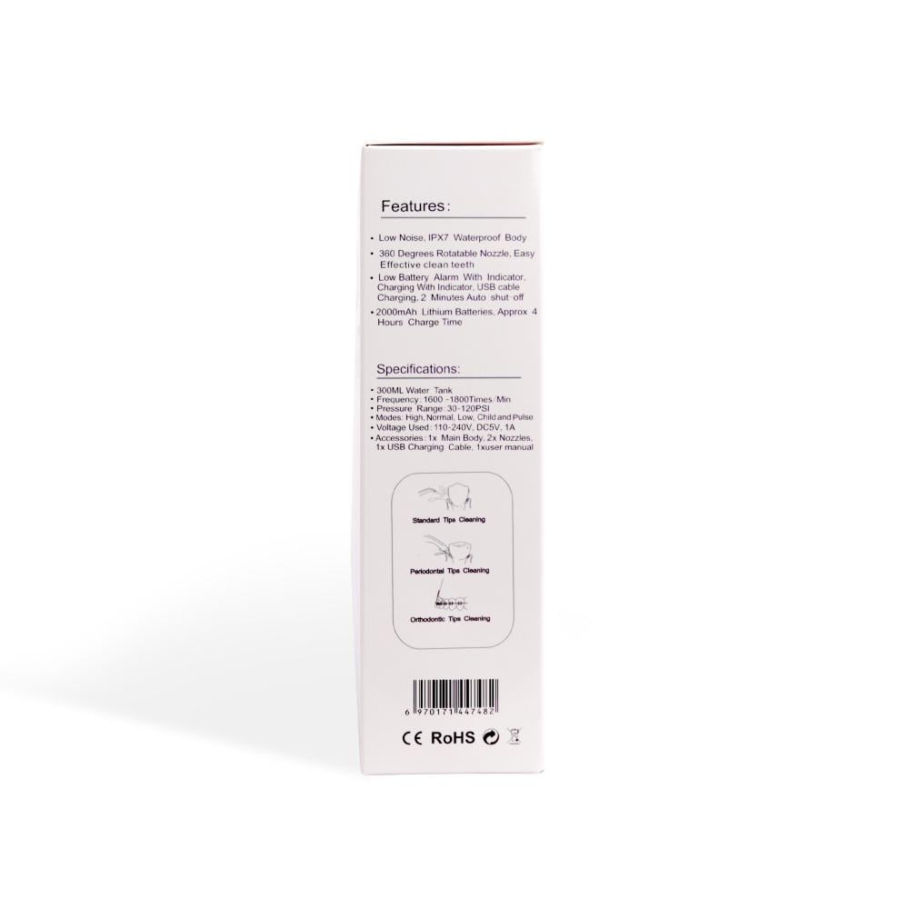 - تصميم لاسلكي: يتيح لك تصميم مضخة تنظيف الاسنان اللاسلكي حرية الحركة وسهولة الاستخدام دون الحاجة إلى الأسلاك المزعجة. يمكنك استخدامه في أي مكان وزمان ترغب فيه.